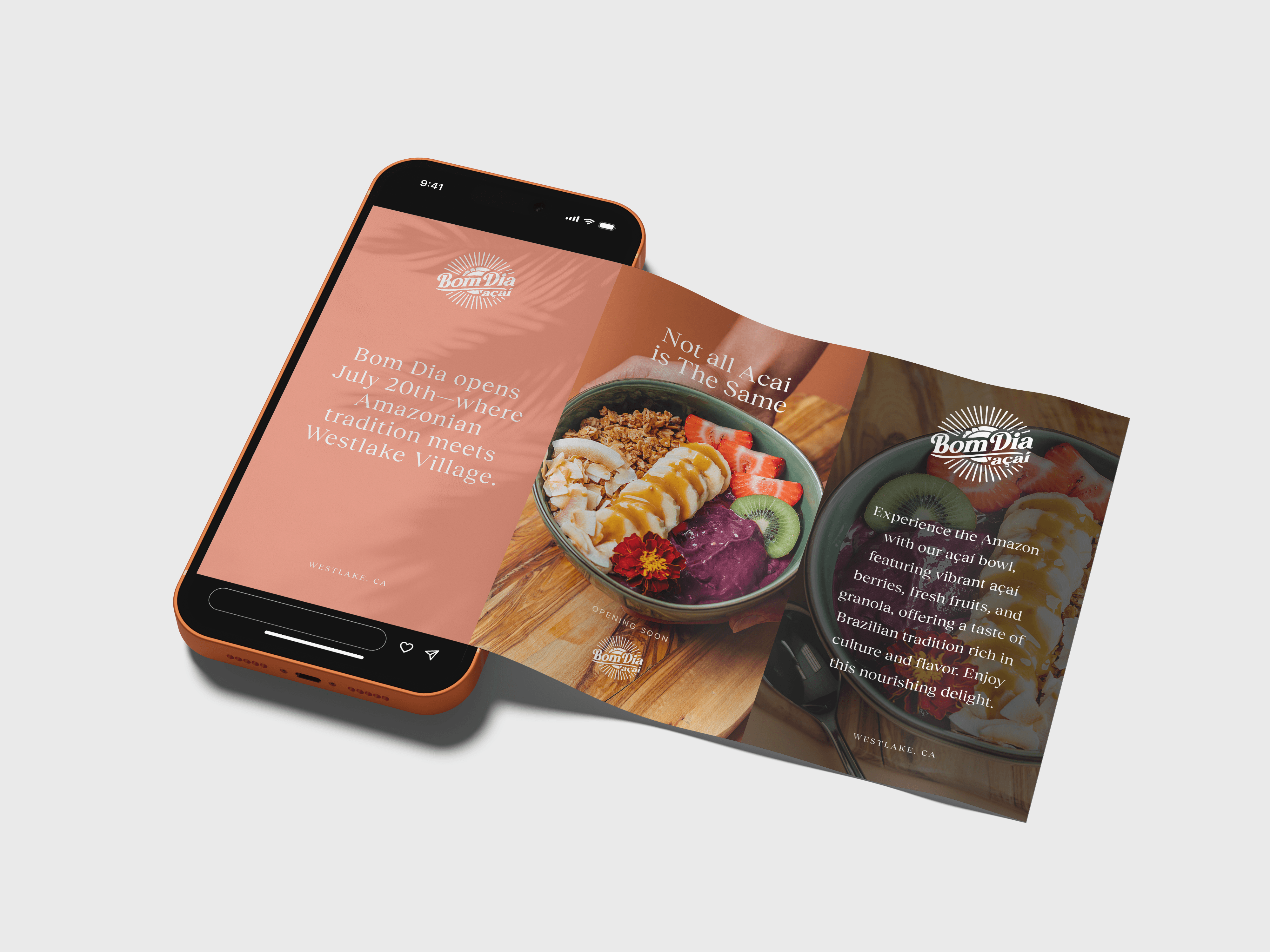 Bom Dia Acai was entering a saturated açaí market in Westlake Village with no digital presence, competing against established chains with existing customer bases and online ordering systems. Their authentic Brazilian approach needed to translate digitally without getting lost in the wellness food noise.